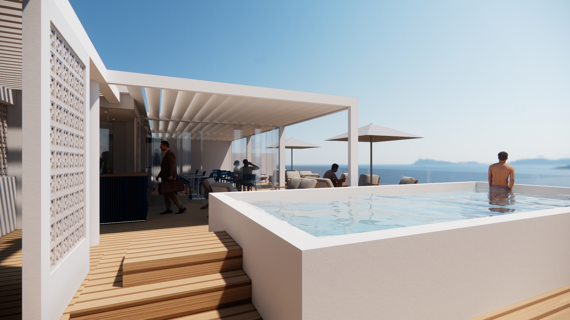 Il progetto prevede la realizzazione di un hotel di nuova costruzione a Olbia, concepito per offrire un’ospitalità elegante e immersiva, in costante dialogo con il paesaggio circostante.